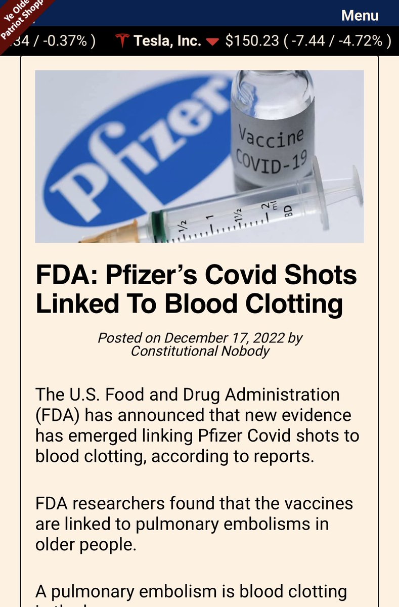 Infant Given Vaccinated Blood Dies From Massive Clot The clot ran from his knee all the way to his heart. Source story and video*** FDA now says Pfizer’s C0VID JabsLinked to Clots Like Loading... Related